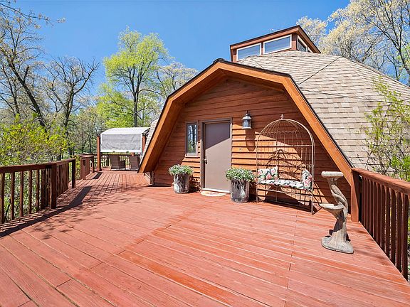 Welcome home to this Geodesic dome style home sitting on over 5 acres in the well desired area of Custer Park. Want land but love to shop? Need an enormous garage that is a mechanic's dream? This is the home for you with Bourbonnais less than 20 minutes away and a 30 x 30 garage! After stepping foot onto the freshly stained enormous 1,000+ sqft wrap around deck, walk into high vaulted ceilings and a stunning kitchen with an enormous island. Take an evening stroll on your very own bridge over a quaint creek and explore the trails on your property. This one-of-a-kind home comes with a new Generac generator connected to the home and garage, new quartz countertops, new stove, new dishwasher, new farm sink, new LVP flooring, new carpet upstairs, remodeled main level bathrooms, fresh paint indoors and outdoors, new water heater, and water filtration system, full finished basement and a huge outdoor shed. Located in Reed Custer School distract! These Geodesic dome homes and high air circulation efficiency meaning your monthly bills will be extremely cost effective with this being one of the strongest structures in existence today! This home won't last long, schedule a showing today to see this rare one-of-a-kind home and property! Both the pergola and gazebo stay!