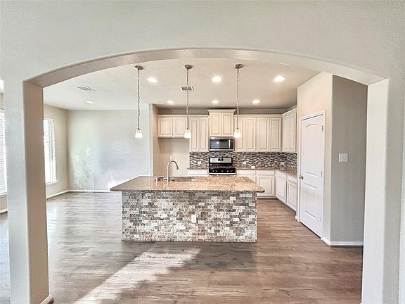 Beautiful 4-bedroom, 2.5-bath, 2-story home located at the entrance of the neighborhood. This open-concept layout features laminate flooring throughout the first floor, granite countertops in the kitchen, fresh new paint, and a brand-new dishwasher. Washer and dryer are included for your convenience. The spacious owner's suite offers a double-sink vanity, separate shower, and relaxing bathtub. Enjoy the large backyard, perfect for gatherings, with pest control included in the lease. Walking distance to the elementary and high school, and conveniently near the 529 shopping center, West Rd. Walmart, and Fry Rd. HEB.