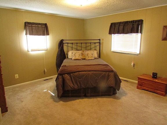 Country living. Ranch style home on 9.9 acres with 2 fireplaces, 4 season room, dining room, covered front porch, back deck, attached garage, detached shop building, new laminate floor at entry and down hall, new carpet, new bathroom, new central heat and air, new hot water heater, unfinished framed full basement with lots of potential, new refrigerator, new stove, beautiful yard with fully developed trees, pond, landscaping pond, Woodson County. Asking price $105,000. Great home in the country!