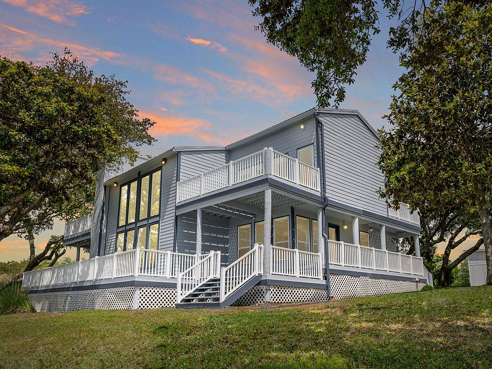 Grandiose tinted windowsExpansive wrap around deckMetal roofPrivate backyardNew hardi-sidingLarge half-acreWaterviews from every room