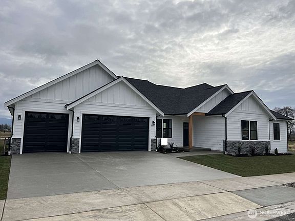 Breathtaking views from this new construction home just completed. Single-story rambler with three car garage for all your storage needs. 3 bedrooms plus an office to work from home or just extra space. 2 1/2 bathrooms. Huge primary suite with walk-in closet, heated tile floors, freestanding tub, and custom tile walk-in shower. Vaulted ceilings in your great room as well as out on the patio which is set up for relaxation and entertaining with two covered patio spaces. Set up your outdoor dining along with your TV and reclining area. All while taking in the breathtaking views of mountains and farmland. Enjoy the sunrises all the way to the sunsets. This is one of a kind with no one building alongside you or behind you.
