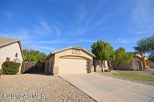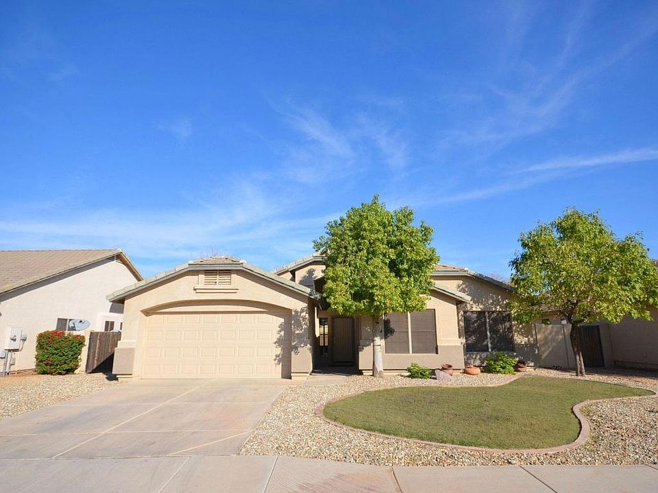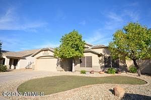 Charming single level home in the heart of Finley Farms. Walk through the door and you're welcomed by a tiled entry way, vaulted ceilings, large living/dining room and through the tall Living Room windows, a view of the gorgeous Pool and stacked stone waterfall. Great size laundry room, 2 car garage with work bench area, amazing paved back yard with covered patio, large side yard and so much more... Once you get here, you'll know you're home.