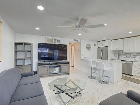 This Century Village condo is available for immediate rental and offers stylish convenience and contemporary updates. It is beautifully maintained and fully furnished, providing a turnkey experience. The condo features tile flooring, updated fixtures, and finishes, showcasing attention to detail. The kitchen is equipped with ample cabinets and quartz counter space, as well as stainless steel appliances. Additionally, there is a lovely Florida room that can be used as a home office, craft room, or sitting area. The community offers a range of amenities, including a clubhouse, fitness center, performance theater, 12 tennis courts, 12 shuffleboard and bocce ball courts, a putting green, and an outdoor pool. The condo has been completely remodeled. The HOA fee is $262.56, rec lease is $220.55