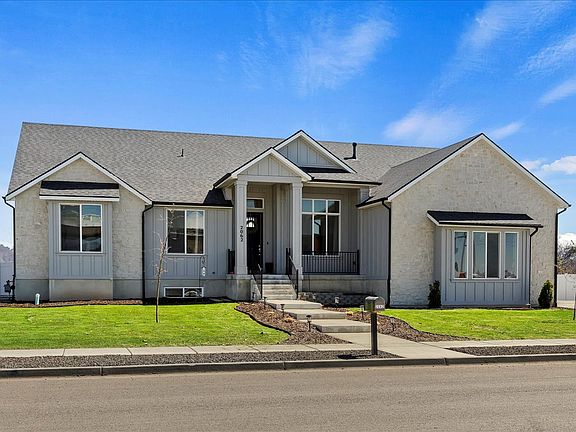 Nestled on a generous 1.28-acre plot, this stunning fully finished rambler epitomizes luxurious country living. Home is within walking distance to the new West Field High School. Step into an inviting space where the open floor plan seamlessly blends with soaring vaulted ceilings, creating an atmosphere of expansive comfort and elegance. Wake up to breathtaking vistas of the majestic mountains, offering unobstructed views perfect for witnessing the beauty of sunrise each morning. As you enter through the front door, you're greeted by a sense of grandeur and warmth that defines every corner of this home. Entertain effortlessly on the fully covered back deck, ideal for gatherings and al fresco dining against a backdrop of nature's finest. The newly finished walkout basement (completed in 2023) adds another dimension of living space, providing versatility and modern convenience. The primary suite is a sanctuary of style and serenity, while two kitchens and two laundry rooms offer unparalleled functionality. An apartment or mother-in-law suite with a walkout to the backyard ensures privacy and independence for extended family or guests. Stay active and healthy with the convenience of a home gym, and cultivate productivity in the spacious office area. Ample storage including a large food storage and extra storage in the utility room caters to organizational needs with ease. Parking is a breeze with the extra deep and tall 4-car garage, while the fully fenced yard with a garden area and pasture invites outdoor enjoyment and relaxation. Discover a bountiful orchard featuring apple, nectarine, peach, apricot, cherry, pear, and Asian pear trees, along with raspberry, blackberry, and elderberry bushes, promising seasonal delights right at your doorstep. Welcome to your dream home, where every detail is meticulously crafted to elevate your lifestyle and create lasting memories in a picturesque setting.