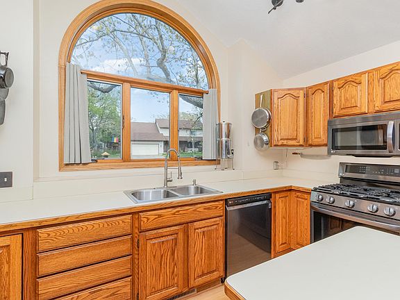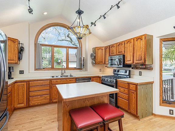 It is a lovely home on a quiet street with updated bathrooms and a kitchen, complete with a center island and updated appliances. 4 spacious bedrooms and a wonderful walk-out lower level with a fireplace. A large deck has just been stained and overlooks the fenced yard. Great for kids and pets and down the street from the ballpark and playground. 3-car heated garage with floor drain for the garage enthusiast.