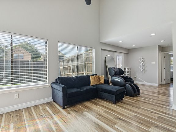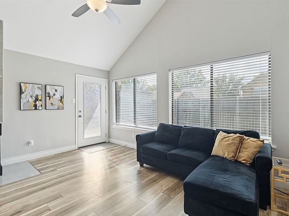 This charming 3 bedroom, 2 bathroom home offers the perfect blend of comfort, flexibility, and convenience. At approximately 1,300 sq ft, it feels cozy yet perfectly sized, with an inviting layout that makes the most of every space. The bright living and dining areas flow comfortably throughout, making the home feel warm and welcoming. The enviable kitchen is a true highlight, boasting built-in stainless steel appliances, ample storage, a stylish backsplash, and beautiful quartz countertops. The serene downstairs primary bedroom features an ensuite bath with a custom shower and a spacious walk-in closet. Upstairs, the additional bedroom and open loft provide valuable flexible space—ideal for guests, a home office, hobby area, or extra living space. The possibilities also create appealing income potential for those looking to maximize the home’s versatility. The fully fenced backyard that just the right size for play, relaxation, and enjoying your own private haven. Situated on a large corner lot, the property also includes additional outside storage and a tall privacy fence. With its excellent location near shopping, the airport, and quick access to I-35, this home checks every box. Cozy, functional, and full of charm—this happy little haven has it all! 3D tour available online.