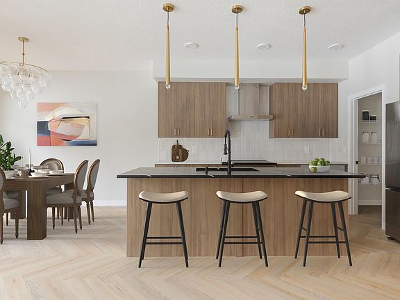 Welcome to the “Easton” in Edgemont by multi–award-winning builder Rohit! This beautiful 2-storey home offers seamless living space paired with the bold Haute Contemporary designer palette. Sophistication meets functional family living with an open-concept main floor featuring a bright living room framed by large rear windows, a spacious dining area, and a sleek kitchen complete with a massive quartz island, ample cabinetry, and a generous walk-in pantry. Upstairs, a well-appointed bonus room anchors the level, leading to three comfortable bedrooms. The primary suite offers a spa-inspired ensuite and a large walk-in closet, while upper-floor laundry adds everyday convenience. With a double attached garage, refined finishes throughout, and the option to develop the basement for added living space, this home offers both style and practicality. Situated in the heart of Edgemont, you’ll enjoy a family-friendly community with parks, trails, and quick access to amenities. Tentative completion is Summer 2026.