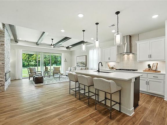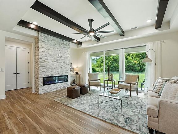 Welcome to the innovative design and modern style of Hakes Brothers Homes! The Lacey, featuring the Modern Prairie elevation, has 1980 Sq. Ft., zero entry all on one level to make everyday living more convenient and accessible! This home offers seamless living with 10ft ceilings and 8ft tall doors that create an airy, spacious fell. The gourmet kitchen is a showstopper, boasting sleek granite countertops, custom cabinetry, under cabinet lighting, stainless steel appliances and a generous island perfect for cooking and entertaining. The Great Room is the perfect place to unwind and enjoy your favorite shows, all while taking in the stunning floor-to-ceiling fireplace and the rich wood beam detailing in the vaulted ceiling. The primary suite provides tranquil escape with a spa-like bath with glass enclosure, lighted & heated mirrors and spacious walk in closet. Enjoy your charming covered patio ideal for morning coffee or evening relaxation. This home blends modern luxury with effortless convenience! Discover the charm of Hidden Hills – a community that has it all! Come see for yourself what makes this neighborhood so special, with homes starting at just $329K
