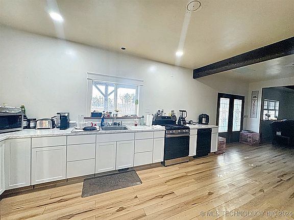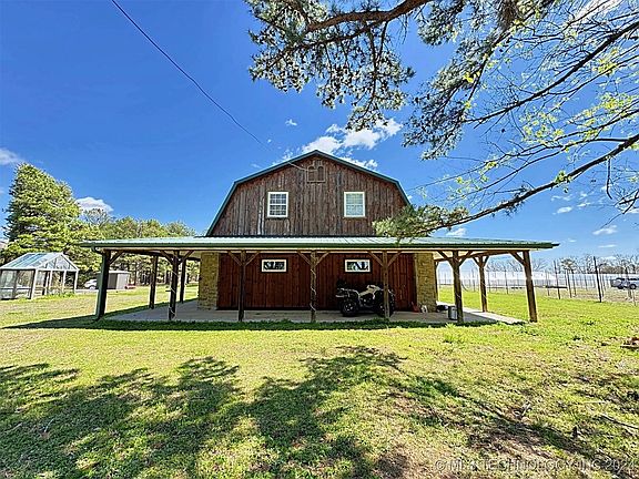 Introducing a Rare Gem: Your Dream 28-Acre Farm in Cherokee County! Welcome to a picturesque retreat nestled in the heart of Moody, Oklahoma. This exceptional 28-acre farm property offers a unique blend of tranquility, functionality, and natural beauty. The sprawling landscape encompasses not one, but TWO charming homes, each with so much character and potential! The main residence is a partially remodeled 5 bedroom with huge main suite on first floor, 2.5 baths, 2 story open concept home with 2 living areas, covered wrap around porch and adorable stone cottage look. Across the way, the second partially remodeled home provides an ideal space for guests, as a rental property or multi-generational living. This cabin style cutie includes a cozy den with double sided fireplace, open kitchen area and dining room, 3 bedrooms, 1 finished bathroom and one unfinished bathroom, and access to exterior second story patio from each bedroom upstairs. The heartbeat of this farm is the 2 story barn complete with electric, plumbing and a concrete floor. This is a haven for any aspiring hobbyist or farmer. With ample space, main floor bathroom and unfinished upstairs apartment with the most amazing view of the Illinois River Valley off the covered patio. Whether you're considering horses, chickens, or cultivating your own crops, the possibilities are as vast as the land itself. Greenhouses on site and Partially cleared land with brush hogged woods perfect for your own personal walking or ATV trails! Just a few miles to the Illinois River, highway access from 82N and just 20 minutes to downtown Tahlequah. Both homes have updated and separate septic systems, separate electric meters and propane tanks. This property will not qualify for FHA or VA Loans.