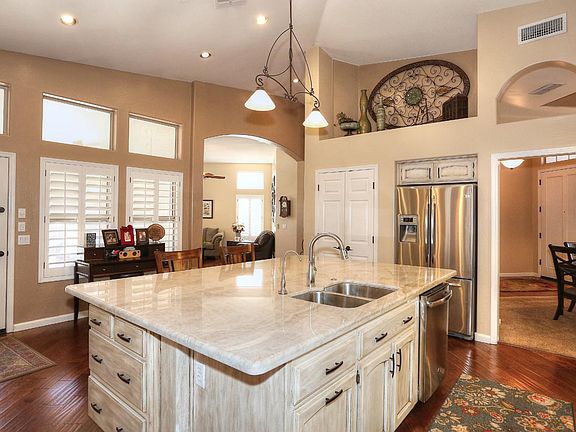 You'll love this gorgeous home in Scarlett Canyon, within walking distance to beautiful hiking trails! Highly upgraded throughout, this home offers 4 bedrooms & 3 full baths in 2679 SF with formal living & dining, & separate family room with gas fireplace. The chef's kitchen is a delight with Viking gas cooktop, extra large quartzite islands for prep space & casual dining, granite countertops, glass tile backsplash & pantry. The elegant master retreat has double door entry, bay window, 2 walk-in closets & private bath with dual vanities, separate tub & shower. Designed for outdoor living, the backyard offers a salt-water heated pool w/waterfall. natural gas firepit, barbeque/jacuzzi pad, gazebo, fenced in dog run, & multiple areas for sitting. Other features of this home include; Hickory floors, upgraded ceiling fans, iron security doors, R/O, hot water recirculating system, programmable thermostats, sun shades on back patio, solar screens on windows, updated baths, soft water loop, fully paid solar & more! See this stunning home today! Seller is related to a Realtor.