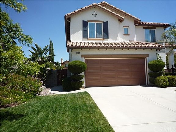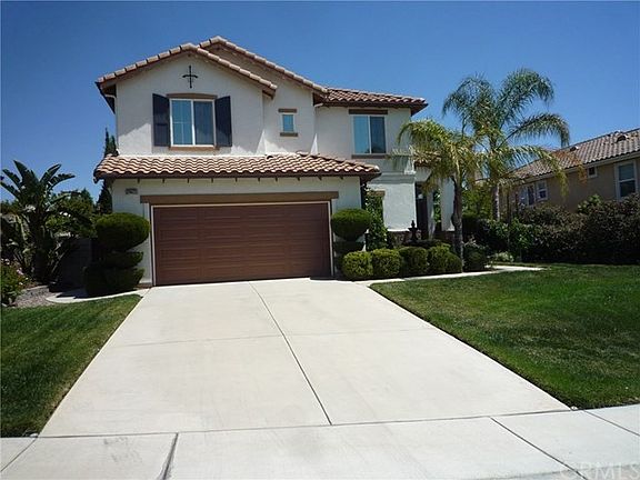MOVE IN READY: VERY WELL MAINTAINED 2 story, 4 bedroom, 2.5 bath home located in Orangecrest. 2613 SqFt, Full 2 car garage with workshop or extra storage space. Double Entry Door, Open kitchen with breakfast nook, lots cabinets, 18" diamond laid tiles floor. Master suite has a coffered ceiling with a Jacuzzi and separate shower and double vanity also large walk-in closet. Family room with cozy fireplace opens to both kitchen and formal living room with an 18 ft. ceiling Separate Formal Dining room is huge. Separate laundry room. Recessed lighting throughout. Rain Gutters are installed all side. Most windows are treated with professional quality solar control window films and Blinds. Beautiful back yard with fruit trees like lemon, pear, cactus, plum, orange and so on and harvest them each season. Installed Gazebo . Excellent schools. Very close to Orange Terrace Park , Library and Community center, Play ground and Grove Community Church. Close to Albertson and Stater Bros market(coming soon) and restaurants, day care centers, banks, Shopping center, Movie theater, Gym and Fwy 215 and Fwy 60. No Pets, No smoking since purchasing new home