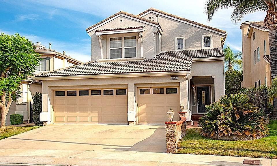 Gorgeous home in the highly sought after SORRENTO AT PORTER RANCH. Now is your chance to rent in one of the finest 24 Hour Guard Gated communities Porter Ranch has to offer. Boasting nearly 2,700 sq. ft. of living space with a three car attached garage, sits one of the most desirable floor plans available. As you make your way inside its grand entrance, you will notice the airy two story high ceilings with formal living room and dining area. Directly opposite do you see a double french door to enclose your private office which if needed, can be used as an additional downstairs bedroom. Across the hallway will you find a separate laundry room and bathroom with a standing shower. Adjacent to the formal living room is your entertainers open concept living room with upgraded kitchen. Quartz counter tops, extended kitchen island, built in refrigerator and modern backsplash are just a few things this home has to offer. Outside, enjoy the city views from your private backyard. Upstairs features 3 additional bedrooms and a spacious loft which can double as a play area or another office as needed. Through the double door entrance of the master bedroom, you have views of the city sky. The master bathroom has a large bath tub, separate standing shower, privacy toilet, double sink vanity and a spacious walk in closet. The house comes with a 7.475 kW solar system. 20620 Pesaro Way is zoned for the renowned Porter Ranch Community School Tk-8th Grade program. Sorrento has 2 community pools, 2 playgrounds, ample guest parking spaces, 24 Hour guard gated security, The home is minutes away from The Vineyards at Porter Ranch, Kaiser Permanente, Sierra Canyon School, Porter Valley Country Club, parks, restaurants, shopping and freeways. Renter responsible for utilities