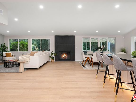 Set on a peaceful street in Woodland Hills, this beautifully reimagined single-story residence showcases modern sophistication, thoughtful upgrades, and a seamless, light-filled layout. Offering 4 bedrooms and 3 bathrooms, the thoughtfully designed open floor plan is enhanced by vaulted ceilings, warm floors, and an abundance of natural light. Before stepping inside, the property greets you with towering palm trees and an expansive driveway that set a welcoming tone. At the heart of the home, the recently upgraded custom kitchen features a Wolf 6-burner range, new appliances, prep sink, wine and beverage fridge, and sleek countertops with ample cabinetry. Seamlessly connected to the dining and living areas, the open-concept layout is anchored by a contemporary gas fireplace and expansive sliding glass doors that invite a true indoor-outdoor flow. The primary retreat boasts generous closet space and a spa-like ensuite bathroom with dual floating vanities and a glass-enclosed step-in shower. The other bedrooms and bathrooms continue the modern design. The backyard is a private oasis overlooking a lush hillside, complete with a covered patio for al fresco dining, a putting green, and a resort-style pool, perfect for relaxing and entertaining. Moments from Westfield Topanga, The Village and easy access to the 101 freeway, this home offers the best of California living in an unmatched location.