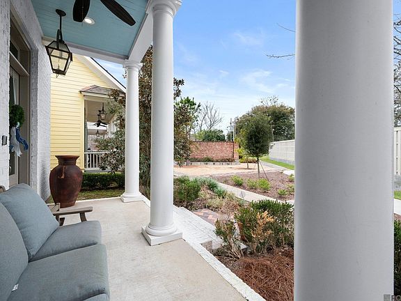 FRESHLY PAINTED INTERIOR (2025) / EXTERIOR (2024) - SECURITY CAMERAS AROUND PERIMETER - WHOLE HOUSE GENERATOR This stunning New Orleans-style home was custom built as builder's personal residence. Adorned with the ultimate southern front porch, balcony, and even a side porch with a retractable patio screen, gas grill, and swing for lounging! The home is welcoming into the spacious great room complete with plantation shutters, custom drapes, and a fireplace surrounded by built-ins. A gourmet kitchen awaits just around the corner featuring a Wolf range, large island with high-end light pendants above, exotic granite, and beveled backsplash with a pot filler. The master bedroom is located downstairs and offers new flooring and abundant space for maximum relaxation with a spa-like en suite bathroom featuring a custom job built tiled shower, separate soaking tub, dual vanities, and a large walk-in closet. Laundry room is conveniently located off of the master offering a wine cooler, built-ins, and ample storage. Upstairs opens up to a full bonus room and offers two full bathrooms and three spacious bedrooms; one of which includes its own bathroom and the other two provide access to sunset views from the balcony. Spoil yourself with this beautiful custom home ... luxury lifestyle in a prime location, offering a RESORT POOL - FITNESS CENTER - SILO FARM GARDEN - PLAYGROUNDS - CLUBHOUSE
