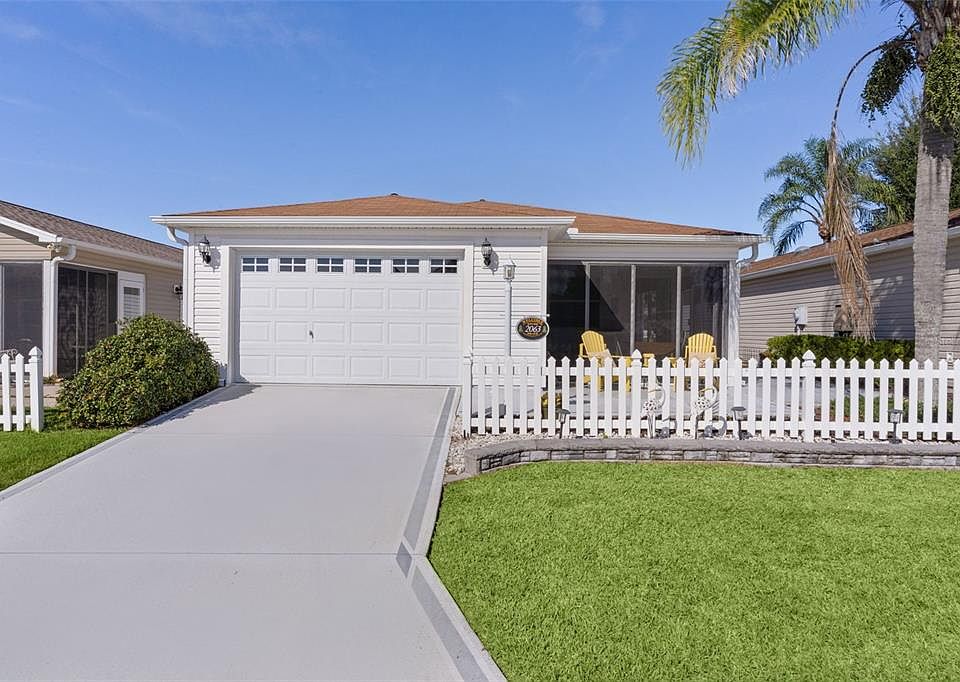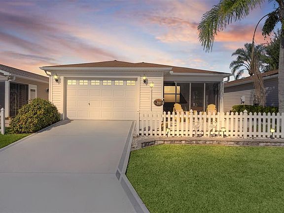~PRICE REDUCTION~ ~NO BOND~ ~2025 HVAC~ ~ LUXURY VINYL PLANK FLOORING THROUGHOUT~ ~INSIDE LAUNDRY CLOSET~ This 2/2 COLONY Patio Villa in the Village of BONNYBROOK, BROYHILL VILLAS with its PAINTED CONCRETE, provides a beautifully maintained setting. Enjoy your GLASS-ENCLOSED FRONT LANAI complete with more painted floors, ceiling fan, under HEAT AND AIR—perfect for relaxing year-round. Inside, you’ll find NEW LUXURY VINYL PLANK FLOORING throughout, giving the home a modern, seamless look. The kitchen features UPGRADED LIGHTING, laminate countertops, a SOLAR TUBE for natural light, a closet pantry, and ALL NEW STAINLESS-STEEL APPLIRANCES. The primary bedroom includes a ceiling fan, an OVERSIZED WALK-IN CLOSET, and an ensuite bath with a NEW VANITY, LIGHTING, and MIRROR with QUARTZ COUNTERTOPS. The guest bedroom offers a ceiling fan and built-in closet, while the guest bath features a linen closet, UPGRADED CABINETRY with a MARBLE COUNTERTOP and NEW LIGHTING. The INDOOR LAUNDRY area includes WHIRLPOOL appliances and shelving, adding to the home’s efficient layout and thoughtful design. The 1½-car garage features a laundry tub, built-in cabinets, and painted flooring for added convenience and storage. The Roof is 2013 and the Rheem Hot Water Heater is 2014. Minutes from restaurants and shopping in Southern Trace Shopping Center on CR 466. Close to numerous Rec centers including Pimlico Family Pool & Rec Center and Churchill Street Rec Center and many golf courses. This well-maintained villa combines comfort, upgrades, and an unbeatable location—ready for you to enjoy The Villages lifestyle today!