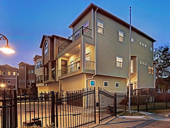 Gorgeous home in desirable gated community located in The Greater Heights. One of the best locations in the neighborhood, this corner unit offers an unobstructed view of the open area on the side of the home. The home features an open floor plan, gourmet kitchen, high ceilings, generous balconies. Spacious bedrooms. Two car garage with extra storage and cedar garage doors. Close proximity to the best local spots in the Heights and easy access to major freeways.