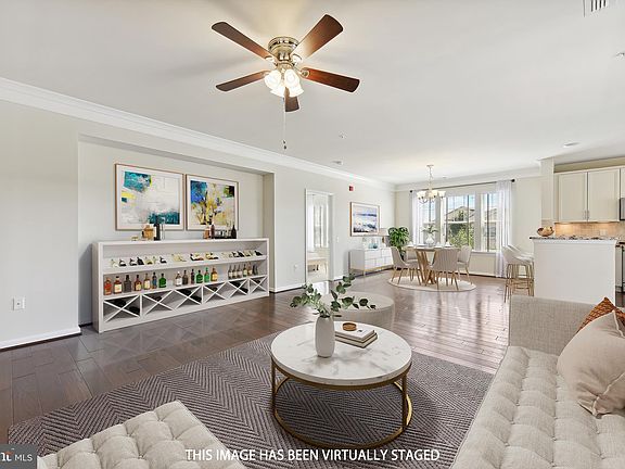 Feels like home ALREADY! This sun filled Davenport model has views of mature trees in highly sought after 55+ community of Potomac Green by Del Webb. Two Bedroom & 2 bathroom+ Den, Corner Unit boasts wood flooring through living room, dining room & Kitchen. Upgraded gourmet Kitchen with gorgeous countertops, travertine backsplash with under cabinet lighting, and stainless steel appliances. Spacious primary suite with a great view of trees, neutral carpeting, and attached upgraded primary bath stand alone shower & huge walk in closet. Additional bedroom with neutral carpeting, full upgraded bath, perfect for guests! The Den makes a perfect work space and the covered balcony is perfect for morning coffee! THIS UNIT COMES WITH A COVERED A PARKING SPACE #61 which is directly outside the front door of the building AND STORAGE UNIT A. BRAND NEW CARPET in Primary & 2nd bedroom* The Condominium community is within walking distance from the clubhouse and features open grassy areas with benches and adjacent walking paths including one to One Loudoun! Amenities include: There is also an Exercise Room for Yoga and classes. The Heated Indoor Pool is used for Laps and Water Aerobics Classes. Relax in the Hot Tub after a swim. The Outdoor Pool is a perfect place to make new friends in the Summer. Relax and Meet with Friends and Neighbors in one of our new Lounge areas. There is also a Card and Game Room and Billiard Room. Upstairs you will find a Lending Library, Ping Pong Tables, Computers, and a Walking Track. Outdoors, you'll find Tennis and Pickle Ball Courts, Bocce Ball Courts, Resident Garden Plots, and numerous Walking and Jogging trails throughout the Community. A bus stop at the Club House connects residents to other transit services from the Virginia Regional Transit system, Park and Ride Lots, and Ashburn Village Shopping Center. Enjoy close proximity to Shops and Restaurants at One Loudoun, which is only a 5 min drive,. There are paths through the community and Condos that allow you to walk to One Loudoun over the Wetlands and Wildlife Preserved land. The Community is across the street from a new sports Complex, Dog Park, and the new Loudoun County Senior Center. Travel to nearby wineries, Shopping, and Golf Courses. Bike to the W&OD Trail. Potomac Green is just 5 miles from the INOVA Loudoun Hospital, 10 miles from Dulles Airport, and 30 miles outside Washington DC.