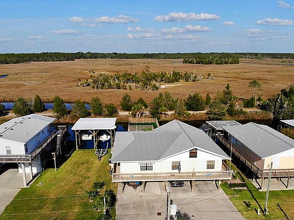 Welcome home to this beautiful canal home boasting over 2800 square feet with 4 bedrooms, 3 full baths, and a huge loft/bonus room. Water view from every window. Covered boathouse has two boat lifts (surrounded by safety fencing), a 28 X 8 newly renovated floating dock and fish cleaning station. The enormous sun deck (26 X 24) offers amazing marsh views and canal is just a couple minutes boat ride to the Gulf-scalloping and fishing await! Carport offers 2500 sq feet of covered parking perfect for large family gatherings. Enclosed one-car garage could double as a workshop and/or storage area. Two AC units and water heaters. 50 year metal roof. Furniture is negotiable with offer. Call to schedule your private showing today!
