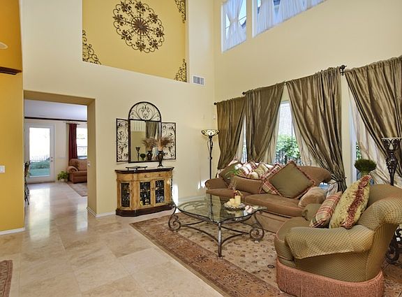 One of the best homes Porter Ranch has to offer! Located in the guard gated Sorrento community and loaded with high-quality seller upgrades making it better than most new construction! Lovingly maintained and in pristine condition this home offers travertine stone tile floors on lower level, 20 ft cathedral ceiling with clerestory windows and circular staircase. Handcrafted custom built-ins including crown molding, custom entertainment center in family room, executive office and formal dining room with built-in China cabinet. Amazing kitchen features stainless steel SubZero frig, GE Profile double-oven, wine chiller, granite counters, custom tile work, breakfast area, and granite center-island with seating overlooking family room and fireplace. Large master suite offers, two walk-in closets with custom storage and a master bathroom with spa tub and dual sinks. Play your favorite music through the custom surround sound located in every room and exterior of property. Well-maintained grassy yard offers a stamped concrete patio and built-in BBQ, refrigerator and seating area. The garage has space for 3 cars and is currently used as gym/work-out area. Community amenities include pool, spa and more. This home is a true gem and not to be missed!