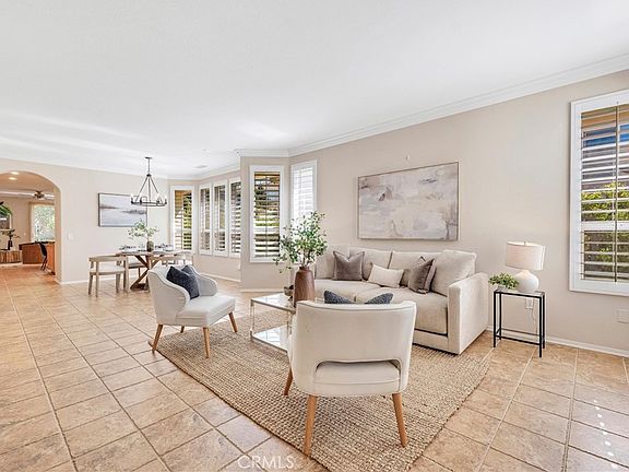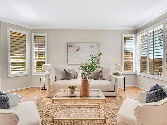 Elegant and rare single-story 3 bed, 2 bath, 2019 sq ft home in exclusive, 24-hr guard gated Sorrento community in Porter Ranch. Low HOA dues! Fully paid Telsa Solar system with Powerwall storage batteries for amazing energy savings! The power bill averages $11 PER MONTH!!! This is worth $$$$ each month in tremendous savings! Great curb appeal with stacked stone façade, serpentine front walkway, and high covered entry. Crown molding throughout. A formal foyer offers soaring ceilings, tile floors, arched window over the door, and a convenient coat closet. Step into the open plan formal living area, including room for both formal living and dining, with tile floors, and plantation shutters. The family room boasts wood floors, fireplace, custom built-ins and sliding glass door out to the backyard. The family room is open to and flows into the gourmet kitchen is open and airy with granite counters, stainless steel appliances, including built-in double oven and range, refrigerator, and a convenient central island. Spacious primary suite is a private retreat with wood floors, double mirrored closest, large windows, and a private sliding glass door out to the yard. En-suite primary bath has double sink vanity, jetted soaking tub and separate shower. Two additional good-sized bedrooms share a full hall bath. Additional features include an attached 2-car garage with direct access and a dedicated laundry room with utility sink, washer and dryer included. The garage has built ins, Outside is a stamped concrete patio, offering space for setting up a BBQ, dining al-fresco, or soaking in the sun in loungers. Drought tolerant artificial lawn and landscaping create a verdant spot for family recreation or entertaining. Sorrento amenities include a community pool, spa, BBQ area, and 24-hr security. Well situated near shopping, dining, entertainment, highly rated schools, the Vineyards shopping center, Porter Valley Country Club, and so much more! Don’t miss out on the chance to make this your new home.