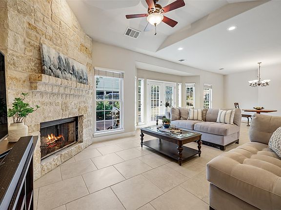 Relax and enjoy lake views and the local wildlife from the comfort of your front porch! The 11 oak trees on the property highlight the beauty of this home and invite birds, that flourish in the hill country, to join in the alluring natural surroundings. The detached garage is highlighted by a pleasant breezeway! Located only .6 miles from Hancock Park, a short stroll or golf cart ride will land you at one of Lago Vista's private lakeside parks! Inside, the open floor plan is enhanced by natural light from the many windows, elegant tray ceilings, and the thoughtfully designed open layout which includes 2 dining areas. Just off of the kitchen is a spacious mudroom, housing a sizable pantry. Built-in cabinets in the laundry closet offer additional opportunity for storage and convenient organization. This home has been carefully maintained with major updates already done for you: new roof (Dec 2024), new A/C compressor (May 2025) and A/C handlers and backyard fence replaced within the last few years. The backyard is a true delight with a producing peach tree and well established stunning rose bushes. The yard provides plenty of space for a garden, and includes a shed that conveys with the property. Washer, dryer and refrigerator also convey with the sale of this home. Owning this property includes membership to the Lago Vista POA, allowing exclusive access to 9 private waterfront parks, basketball court, boat ramps, campground, disc golf course, fishing well, fitness center, hiking trail, marinas, parks, pavilions, pool, tennis courts, pickle ball courts, playgrounds and more! With its inviting spaces and hill country surroundings, this home is ready for you to move in and make it your own!