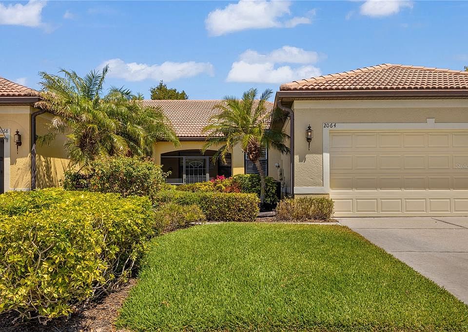 Welcome to 2064 Batello Dr, a rare and exquisite find in the highly desirable 55+ community of Venetian Falls, where resort-style living blends seamlessly with everyday comfort. This extended Bella-Vista villa is perfectly designed for those who crave both relaxation and an active lifestyle. Set on a rarely available corner lot, this home is surrounded by peaceful water views, creating a serene and picturesque retreat. The fantastic floor plan features 2 bedrooms, 2 bathrooms, a versatile den, and a stunning Florida room that invites the beauty of the outdoors in....a beautiful place to read a book while enjoying the nature views. The updated kitchen boasts elegant quartz countertops, stainless steel appliances, and a bright, airy feel that makes cooking and entertaining a joy. Plantation shutters and warm wood laminate flooring enhance the home's inviting ambiance, while the bathrooms shine with upgraded stone vanities. Best of all, this home is being sold furnished and move-in ready—allowing you to start enjoying your new lifestyle from day one. Beyond your private oasis, Venetian Falls offers an unparalleled array of amenities to enrich your daily life. Take a refreshing swim in the resort-style pool, enjoy a low-impact workout in the resistance pool, or relax in the soothing hot tub. Stay active with bocce courts, a state-of-the-art fitness center, and scenic walking paths. The vibrant clubhouse serves as the heart of the community, featuring a game room, craft room, banquet hall, and an exciting calendar of social events that make it easy to meet new friends and embrace the Florida lifestyle. With low HOA fees and no CDDs, this exceptional home offers outstanding value in a prime location—just minutes from Venice’s pristine beaches, charming shops, and top-rated restaurants. Don’t miss this rare opportunity to own a piece of paradise in Venetian Falls!