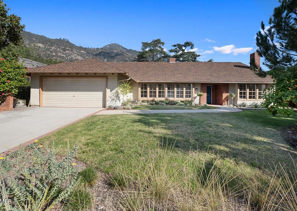 Walls of windows offer tranquil views of the canyon, mountains, and the beautiful, newly landscaped drought tolerant backyard. Living close to nature offers a plethora of hiking and biking opportunities. Located on a quiet street in Fox Ridge Estates this spacious home is perfect for a large family. The living room boasts vaulted, beamed ceiling and a prominent fireplace. There is a second fireplace in the family room which is open to a remodeled kitchen. There is a large primary bedroom that opens to the backyard through sliding doors. One bedroom offers a wall of bookshelves with a rolling library ladder. The second floor consists of a generous-sized room offering a multitude of possibilities: media room, at home office, craft room, gym, etc. Relax on the balcony with a good book while enjoying the peaceful views of Eaton Canyon complete with mature and majestic trees. Other features include: extra height on the interior doorway, direct access to the attached over-sized two-car garage, laundry area, freshly painted interior, partial new carpet and dual HVAC.