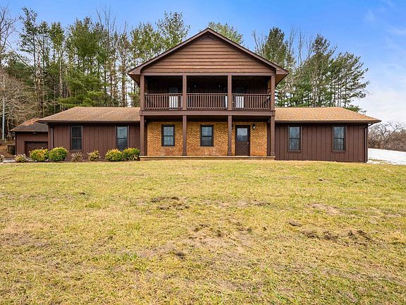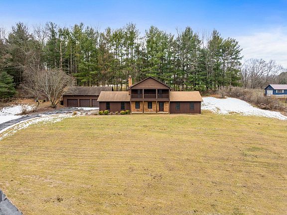 This amazing property offers tons of space both indoors and outdoors. Featuring 4 bedrooms and 3 bathrooms on 2.67 acres of land, your family will have plenty of room to spread out. New flooring throughout, stainless steele appliances in the kitchen, a large stone fireplace in the living room, and large wood paneled family room with bar area. Two bedrooms have access to the balcony overlooking the large front lawn. There's also a new rear deck off of the primary bedroom with built in seating. Newer roof, new well pump, new heat pump, and 3 car detached garage. This home has so much to offer!