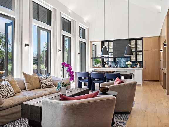 Welcome to 2064 Norfork Road, a sanctuary of modern farmhouse serenity perfectly tucked away on a private lane in the heart of Northfield. Designed by award-winning architect William Massey and surrounded by over an acre of lush, sculpted grounds by Kettelkamp & Kettelkamp Landscape Architecture, this award-winning home embodies the art of calm, refined living with over almost 7,000sqft of luxe living space from head to toe. From the moment you arrive the experience feels effortless-a retreat where architecture, landscape, and light work in perfect harmony. Five floor-to-ceiling windows capture serene garden views and create a seamless connection between the indoors and outdoors. The main level unfolds with an open, organic flow designed for both connection and ease, where the living, dining, and kitchen spaces spill naturally outdoors through walls of glass, making entertaining and everyday living equally seamless. At the center of the home is the show stopping Chef's kitchen anchored by a striking Iceberg Quartzite island, custom handcrafted cabinetry, s/s appliances, and a dream-worthy pantry that delights even the most discerning cook. Two home offices, one intimate and tucked away, the other a grand executive suite with custom built-ins, make this residence as functional as it is beautiful. The main-level primary suite is a serene private sanctuary that opens directly to the terrace and gardens through folding doors. Luxe primary spa bath and two custom closets make this space a retreat within a retreat. Upstairs, the home transforms into a children's and guest haven with two bedrooms, a four-bed bunk room, and large second floor playroom while the lower level continues the theme of comfort and versatility with two additional guest bedrooms, a fully loaded professional level gym, and abundant storage. Step outside to a private oasis of mature trees, sculptural hardscape, and serene garden paths. Gather on the beautiful terraces, relax in the hot tub beneath the stars, play on the the in-ground trampoline, and cook in the outdoor culinary setup that is second to none featuring s/s grill with rotisserie and an Alfa copper-top pizza oven that create the perfect backdrop for weekend entertaining or quiet al fresco nights in. More than a home, 2064 Norfork is a private escape-thoughtfully designed for those who value beauty, balance, and a seamless connection to nature.