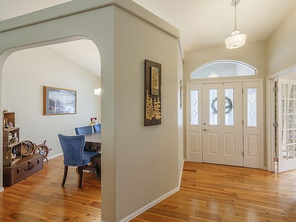 Rare find in the popular Independence Ranch Community. Imagine the awesome view of the Monument on your way from town to this beautiful ranch style home featuring 3 bedrooms including a spacious primary suite with 5 piece tiled bath, split level floor plan with bedrooms and full tiled bath. One half bath near main space for ease of entertaining; living and family rooms with formal dining and eat in kitchen. Hardwood flooring throughout main areas. Lots of windows for natural light and ability to enjoy the mature landscaping this property offers. Office includes a Murphy bed which could be used as a 4th bedroom. Closet space, Pantry, Cul-de-sac, Drop Zone off the 3 car garage with outdoor living space are many of the reasons to check out this property soon so we can welcome you home!
