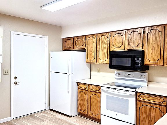 This gorgeous, remodeled condo has it all with nothing to do! Enter into a large living room with plantation shutters, highly upgraded vinyl plank flooring & interior paint throughout, new energy efficient upgraded windows throughout, added insulation in attic, new hot water heater, low taxes $839.00 annually which makes low cost of living here. The kitchen shows lots of oak cabinets, neutral countertops, upgraded white appliances, faucet, sink and lighting. The master bedroom is large with designer shades, ceiling fan, walk-in closet and the master shower is totally remodeled with glazed glass door, seat, cut outs, designer wall panels, shower fixtures and linen closet. Large inside laundry. The south sunny large back covered patio has been extended with paver flooring. Pretty tree lined greenbelt and close to a parking lot for a spare vehicle. Upgraded A/C and heating system. Totally upgraded & ready to move in!