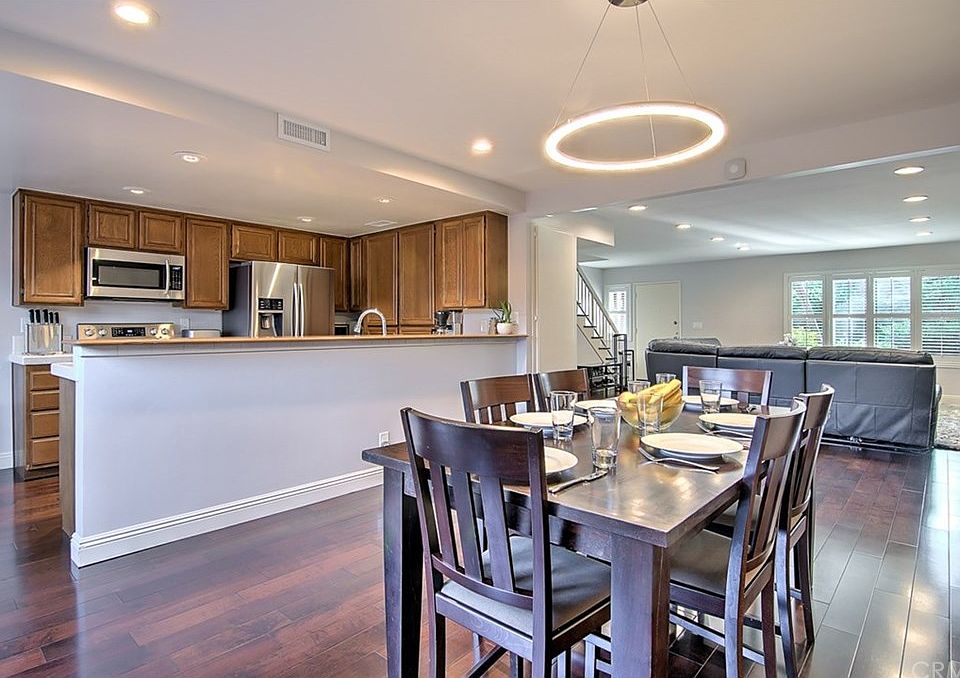 The largest 3 bedroom in The Gardens with a completely open floorplan! This rare Magnolia model is tucked away in a coveted and quiet cul-de-sac, conveniently close to guest parking. Surrounded by towering trees with lots of privacy, this gorgeous home has plenty of room for entertaining. Throughout the home you'll find beautiful new hardwood flooring and baseboards, smooth ceilings, fresh paint, plantation shutters, new stair rails, LED recessed lighting with dimmers, and modern LED chandeliers and lighting fixtures. The light & bright galley kitchen features stainless steel appliances (included), a large breakfast bar and an inviting eat-in kitchen with bay window. From the dining/kitchen area, french doors open up onto your private, enclosed patio, both spacious and sharply landscaped. The oversized 2-car garage features plenty of storage space with built-in cabinets and shelving, and GE Profile washer/dryer included! The home features new air ducting - less than 2 years old, and upgraded "NEST" thermostat allowing for temperature control at the touch of your smartphone! The Gardens offer lush landscaping, a heated pool right around the corner, clubhouse, tennis courts, and access to walking trails. Conveniently located steps away from Eastview Park and it's popular dog park, as well as shopping centers, restaurants, freeways and transit. A must see property in a perfect location and in turn-key condition. This is the home you've been waiting for!!