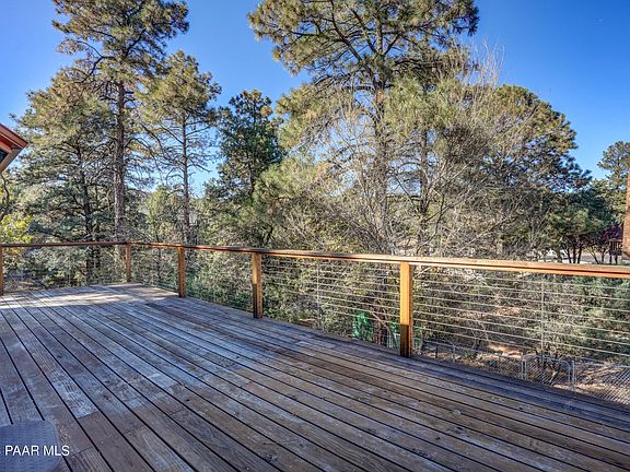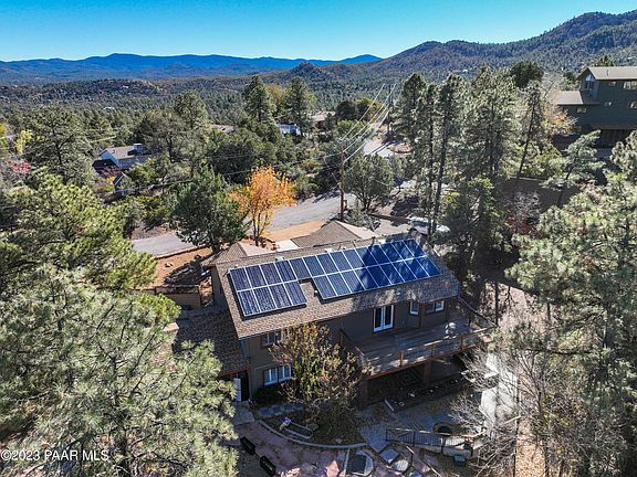 Beautiful completely remodeled home in the Pines with Owned Solar System! Perfect for a Vacation rental with 2nd kitchenette down! The following are all New within the last 1 1/2 years: Roof, water heater, A/C, water softener, interior shutters, flooring and solar system. 3 bed 3 bath with finished basement and mini kitchen down. Great for live in relatives/family! Kitchen with Granite countertops, farm sink and all stainless steel appliances, All remodeled baths with tile surrounds and all updated. Inviting Family room up with gas fireplace. Huge private balcony, fenced yard with plumb tree, Only minutes from down town Prescott! Super location and Move in ready. Loads of storage space down almost 1G worth of shop or storage space Plus a Large Storage shed outside. No HOA