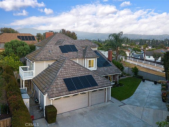 Bright & Beautiful 5-Bedroom Pool Estate with Panoramic Views & RV/Boat Parking! Prime Location at End of a Small Single-Loaded Cul-De-Sac Street Surrounded by Sweeping Views of Rolling Hills, Tree Tops & City Lights - Spacious 3,200+ SqFt Chateau Hills Home Offers 5 Bedrooms & 3 Bathrooms, Including a Large Main Floor Bdrm & Bath with Shower - Spend Your Summer in this Extremely Peaceful & Private Backyard Surrounded by Scenic Views of Nature & Horse/Walking Trail ... Enjoy Sparkling Fully Fenced Saltwater Pool & Spa, Grassy Space for Pets & Play, and Lush Mature Landscaping with Numerous Fruit Trees, Including Lemon, Lime, Orange, Apple & Avocado - Freshly Painted All Inside with BRAND NEW Recessed Lighting, Dual Pane Windows, Ceiling Fans & Handsome Engineered Wood Flooring - Formal Living Room has High Vaulted & Beamed Ceiling & Brick Fireplace with Mantle - Formal Dining Room with Slider to Backyard - Remodeled Kitchen Features Custom White Maple Cabinetry, Granite Countertops with Stacked Stone Backsplash, Bar Top Seating with Drop Lighting Accents, and Stainless-Steel Appliances, Including Microwave, Dishwasher, Double Convection Ovens & Thermador 6-Burner Gas Cooktop with Hood - Kitchen is Open to Family Room with Two Sliding Glass Doors to Backyard, Brick Fireplace with Mantle & Hearth, and Built-In Desk/Cabinetry - Double Door Entry to Generous Primary Suite with Vaulted Ceiling & Brick Fireplace - Primary Bathroom Offers Stylish Barn Door, Dual Vanities, Tile Shower & Separate Bathtub - Upstairs are Three Additional Bedrooms & a Full Hall Bathroom with Dual Vanities - Three Balcony Viewing Decks Upstairs Look Out Over Orange County All the Way to Catalina Island on a Clear Day & Disneyland Fireworks at Night - Oversized Main Floor Bedroom (with private entrance) & Bathroom with Shower, Ideal for Guests or Multi-Generational Families! Convenient Inside Laundry Room with Sink - Attached 3-Car Garage with Wide Driveway, Plus Separate Concrete RV/Boat/Car Parking Pad with 220-Volt Hookups - Dual Air Conditioning Units with Nest Smart Thermostats - Water Softener System – Whole House Filtration System - Solar Energy System - No Mello Roos Tax – No HOA Dues - Award-Winning Placentia-Yorba Linda School District: Fairmont Elementary, Bernardo Yorba Middle & Yorba Linda High