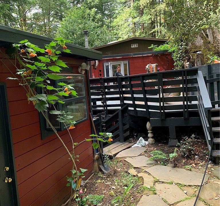 Tucked in the redwoods near the Russian River, this peaceful 3-bed, 2-bath home offers 1,427 sq ft of cozy living. The downstairs has its own separate entrance. As an added bonus, the downstairs unit has an office/bedroom, giving the downstairs unit a configuration of a two-bedroom one bath. Also on the property is an art studio/office that can also be used as a guest unit. One can relax in the redwoods in the beautiful hot tub. Just a 10-minute walk to the Monte Rio Beach. Also, a 10-minute walk to Bartlett’s store. Features include a wood-burning fireplace, dual-pane windows, updated kitchen with stone counters, and decks on both levels. Built in 1952, it's a quiet retreat with forest views and modern comforts.