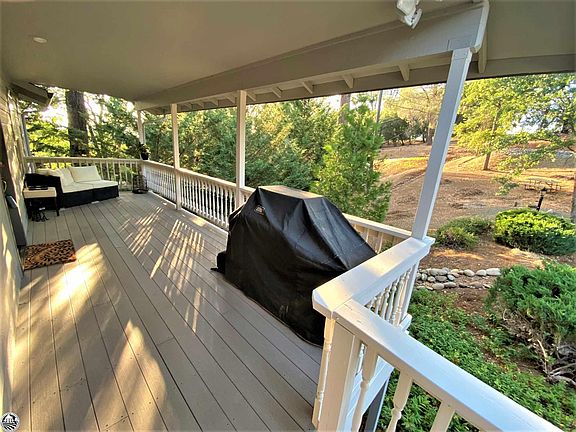 The serene forest views from the deck and wall of great room windows will put you in relax mode. Breathe deep the scent of pines and cedars. Gourmet kitchen is great for multiple cooks and guests to schmooze on the "entertainment bar". Quartz counters. are indestructible and easy to clean. Light maple cabinets throughout. Large, private master suite with sitting area, walk in closet, and lots of bath storage. Corner soaking tub, double sinks, and separate shower. Between the garage and kitchen is a deluxe laundry/mud/storage room with sink, counters, cabinets and bench to take your shoes off. Propane fireplace next to dining and living areas. Color tones of gray, muted green and dark green tie in the exterior and interior palette. Ramp to front door is perfect for wheelchair or "no-stair" access. Large covered front porch for shade any time. Large game/bonus room with propane heat stove, tall ceilings, and sliding door access to hot tub. High quality window blinds and sun shades. RV or boat parking pad, whole house generator. Fiber-cement siding on some of exterior. Septic system clearance. Newer synthetic deck materials. Dog kennel and many more extras. Double-merged lot includes the lot in back for a total of .86 acre. Greenbelt area across the street in front. Lovingly upgraded and maintained by full-time original owner. Located in the gated community of Pine Mountain Lake. 18 hole championship golf course, the lake has 3 beaches, tennis courts. Fine dining at the Grill. Only 24 miles to the Big Oak Flat entrance of Yosemite National Park.