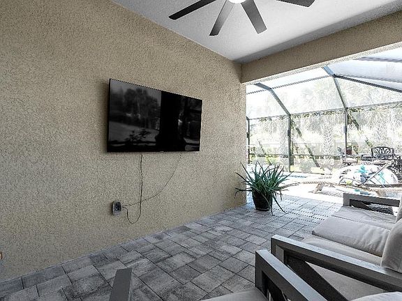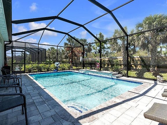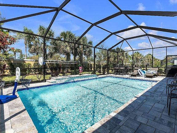 Pool homeCovered lanaiGenerous center islandUpgraded gourmet kitchenQuartz countertopsScreened heated saltwater poolFlex room