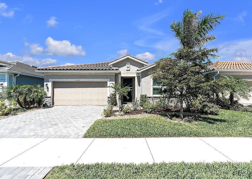 Welcome to this exquisite, nearly new pool home located in the sought-after Renaissance at West Villages community in Venice. This stylish and contemporary residence, built in 2022, features an impressive layout with 3 bedrooms, 2.5 bathrooms, a versatile flex room, and a spacious 2-car garage. Upon entering this remarkable home, you will be enchanted by its modern design and open floor plan, enhanced by elegant lighting and custom blinds. Spanning 2,373 square feet, the living space showcases porcelain tile flooring throughout the main areas, ensuring a seamless flow. At the heart of the home lies the upgraded gourmet kitchen, which boasts quartz countertops, a chic tile backsplash, a cooktop, stainless steel appliances including a built-in oven and microwave, and a generous center island with a breakfast bar. The living room, featuring a sliding door that opens to the lanai, is ideal for entertaining and enjoying tranquil views. The primary suite serves as a luxurious retreat, complete with a tray ceiling, a walk-in closet, and a private bath equipped with dual sinks and a walk-in shower. Additionally, the home includes a flex room and bonus spaces that can easily be converted into a den or office, tailored to your lifestyle needs. Step outside to the covered lanai and immerse yourself in the beauty of the screened, heated saltwater pool, adorned with waterfalls and surrounded by enchanting outdoor lighting and tropical landscaping. The southeastern views provide an abundance of Florida sunshine, creating an idyllic setting for relaxation and entertainment. For added peace of mind, storm panels are included for hurricane protection. The Renaissance at West Villages is a Tuscan-style gated community that offers a wealth of amenities, including a clubhouse with a gym, a full kitchen, social activities, a resort-style heated pool, tennis and pickleball courts, a playground, and scenic walking trails. With low HOA fees, this remarkable community is even more appealing. Conveniently situated near US-41, Wellen Park with its restaurants and shopping, schools, golf courses Explore the historic downtown area of Venice, where you can appreciate the unique shops, architectural landmarks, and serene parks. Search for shark teeth along Caspersen Beach and other nearby coastal locations. Enjoy the vibrant atmosphere at Venice Beach, Venice Fishing Pier, or the Brohard South and North Beaches. Consider renting bicycles from Venice Bikes and Trikes to traverse the scenic Legacy Trail. Visit Shamrock Park and Nature Center or Venetian Waterway Park to experience local wildlife and natural beauty. Engage in shopping at the Venice Farmers Market or Ideal Classic Cars. Lastly, take a moment to visit South Jetty Beach for excellent fishing opportunities and picturesque views. The dining room Chandelier is not included in the Purchase.