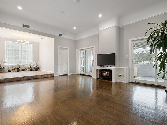Decorative fireplaceLarge balconyPrivate gated courtyardPanoramic hollywood hillside viewsTerracotta tile flooringCarpet in bedroomsHardwood floors