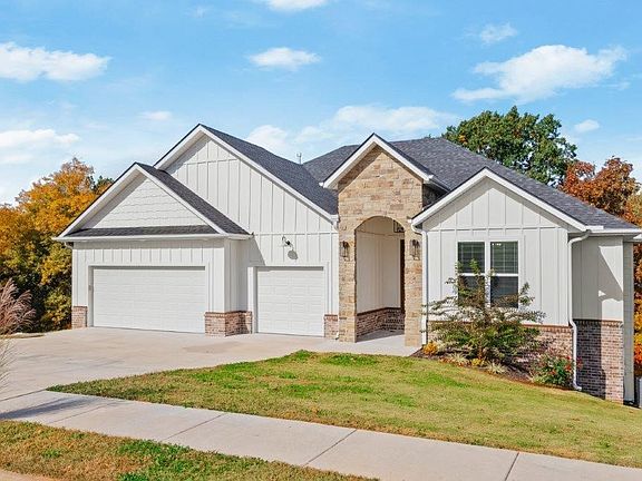 Gorgeous New Construction in Pea Ridge! This 5 Bed/3 Bath Home has 3,151 SF as well as .39 Acre lot backing up to wooded views. Located in the Sugar Creek Golf Course area with easy access to town, schools, shopping & more! Foyer entry welcomes you into the bright and open living space. Guest bed and bath on main level. Large living room has abundant windows looking out to wooded views, gas fireplace, and wood beamed. The kitchen boasts stunning quartz countertops, painted island, built in appliances, oversized pantry, and large gas range. Mud room area off garage has built in shelves and access to laundry room with great storage. The large covered deck with vaulted ceiling and private setting is a great outdoor living space. Huge primary bedroom has spa like attached bath with soaking tub, separate vanities, and large walk-in shower. Downstairs is a spacious second living room with access to lower-level deck and backyard. Three guest bedrooms and a jack and jill guest bath on lower level. Welcome Home!