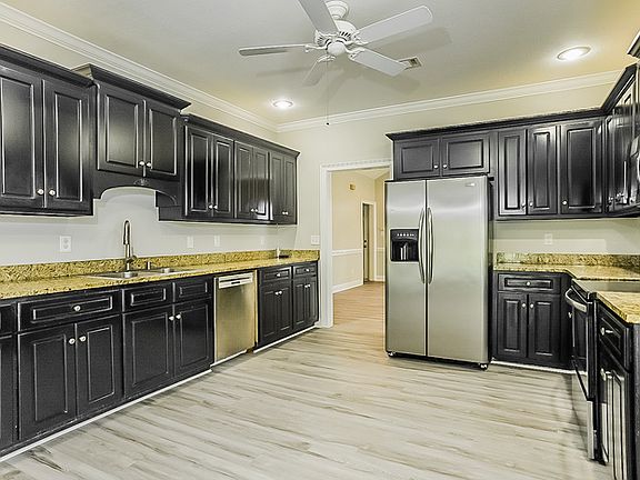 The kitchen and breakfast area are neatly tucked away yet flow seamlessly into the main living space. With granite countertops, stainless steel appliances, and rich espresso cabinets, the kitchen offers a polished, functional design that enhances everyday living.