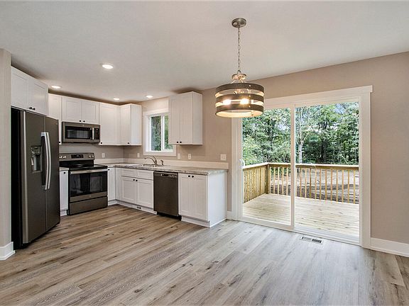 New Construction just completed! This new bi-level is tucked back on a private road on a large 1-acre lot. The spacious entry landing invites you in and has a large coat closet for storage. Kitchen features white soft close cabinets and GE appliances. The open concept kitchen/dining/living space has cathedral ceilings and living room has a built-in space perfect for a large TV. The primary suite offers easy access to the full bathroom with large vanity and dual sinks. Lower level is plumbed for a second bathroom and has daylight windows giving you options for adding additional bedroom/living space. This location offers the peacefulness of country living while still having easy access to shopping, dining, and main roads for commuting. Don't miss out on owning a brand-new home, tour today!