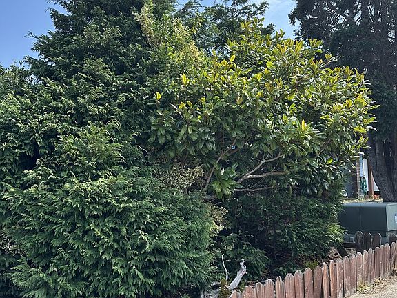 Fenced-in yardSpacious deckSliding door to outdoorsKitchen featuresMagnolia and other trees