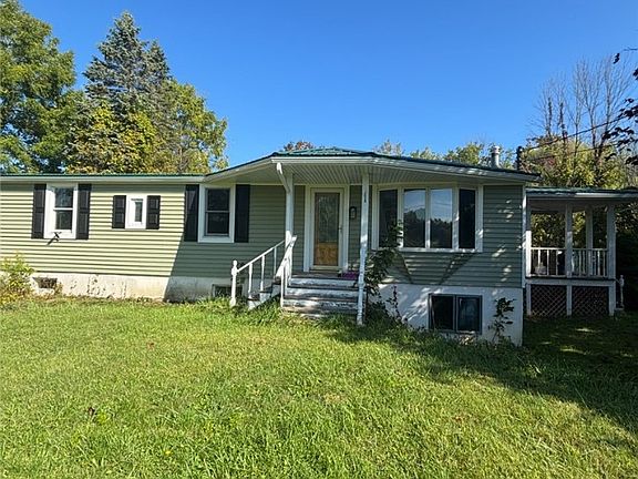 SELLING AS IS CASH ONLY . Manufactured ranch style home with a full walk out basement. The exterior has new siding and a newer Metal roof with a large covered porch great for those beautiful summer days.Situated on 5 acres of beautiful country land.Three bedrooms , 1.5baths, living room, dining area , galley kitchen with new refrigerator and first floor laundry. There is an unknown water issue that caused seepage into the basement. There is mold in the basement. Seller has no knowledge of the cause or exactly what type of mold it is. this is a manufactured home.