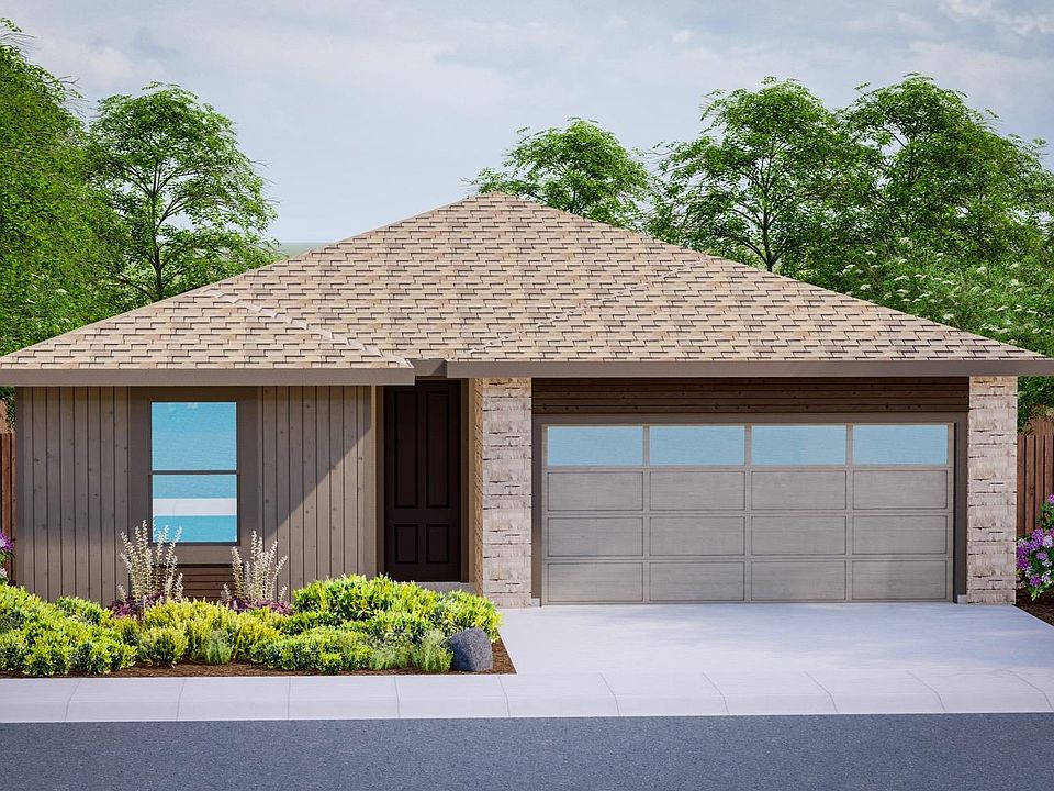 Homesite 57 is located in Inspiration Village at Sierra Vista. At 1,834 square feet, this JMC home is the largest single-story home at Inspiration. This three bedroom, three bath home has a two-car garage. Just off the entryway is the formal dining room to provide more space for entertaining. The impressive kitchen has a large island with room for seating, and extra cabinets extending along the wall into another dining area. The wide great room just off the kitchen has space for larger family gatherings. Bedroom three has an en suite bathroom making it a perfect space for a teen or a guest room. The master bedroom has a large walk-in closet, a double-sink vanity, a bathtub and a separate shower. All this plus an Owned Solar Electric System included in the price of your home, and the HOA maintains your front yard landscaping.