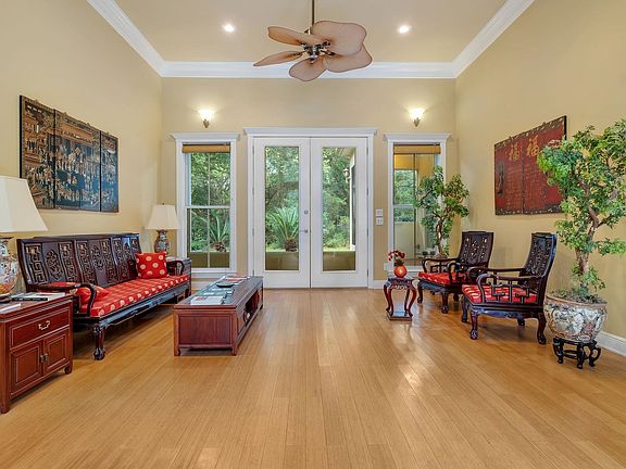 Welcome to your private retreat in the heart of Tallahassee’s coveted Ox Bottom area. Nestled on 2.27 acres, this custom-built 4-bedroom plus an office, 4-bath home (approx. 3,800 sq. ft.) offers the perfect blend of space, privacy, and convenience. A long front drive, expansive front yard, and three-car garage set the tone for the property’s estate-like feel. Step inside to soaring 14’ ceilings, an open layout, and abundant natural light. The spacious kitchen flows seamlessly into multiple living and dining areas, ideal for both gatherings and quiet evenings at home. The fabulous kitchen is a chef's delight, perfect for entertaining, featuring stainless double ovens, a wine cooler, custom cherry cabinets, a butler's pantry, and granite counters, all openly flowing into the family room. Beautiful bamboo floors extend throughout the living areas, adding warmth and elegance. The spacious interior also includes a dedicated office, a formal living room, and a dining room, providing plenty of versatile spaces for all your needs. Retreat to the unbelievable master suite, where the luxurious bath boasts travertine and marble finishes, along with dual shower heads offering both "rain" and jet settings for a spa-like experience. Outside, enjoy unmatched privacy with mature trees surrounding the property, creating a serene buffer from neighbors. The acreage offers room for a pool, guest house, or future expansion—rare opportunities in this sought-after neighborhood. Located minutes from top-rated schools, shopping, and dining, yet tucked away on a peaceful lot, this home delivers the best of both worlds. Close to shopping and is zoned for A-rated schools: Hawks Rise Elementary, Deerlake Middle, and Chiles High School, making it an excellent choice for families. Additional features include a three-car garage. Highlights: • 4 Bedrooms | 4 Bathrooms | ~3,800 sq. ft. • 2.27-acre private lot with expansive front yard • Estate-style drive and deep setback from road • Three-car garage with ample storage/workshop potential • Custom-built in 2004 with timeless layout • Close to schools, parks, and shopping while maintaining privacy