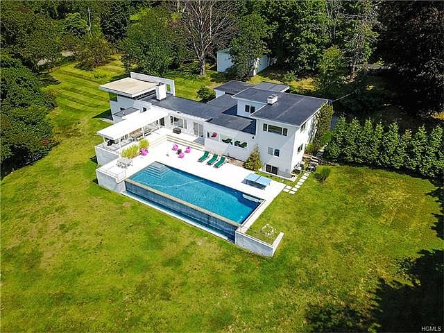 Mid Century Modern Bauhaus spirited, designed for bringing the harmony of nature inside, this home balances a contemporary flow that is seamless. Open designed with expansive glass walls and oversized westerly faced windows add to the tranquil natural setting. Winter Hudson River views. Enter into a new spacious vestibule with Spanish porcelain tiles begins the natural flow of this unique home that is both thoughtful and efficient in design. The living room and the flag stone dining room, both with fireplaces, open to a Malibu styled patio and gunite nfinity pool overlooks the property's tree-lined private 2 acres. 4 well sized bedrooms, 3 interior and one exterior baths. Attached artist studio with expansive ceiling height and light is inspirational in itself, could be transformed into a fabulous office or gym. Partial finished walk out LL with fireplace, has potential for livable space. 35 miles North of NYC. Full time residence or weekend getaway. Express trains to GCT. Low Taxes
