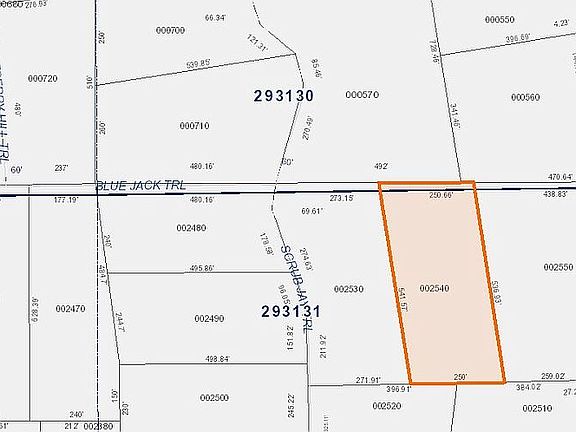 Three beautiful secluded acres in Blue Jordan Forest. Quiet and away from the city. Lot is high and dry not in the 100yr floodplain. Ready for your dream home. Many outdoor activities nearby. Close to international airports. Park in front of the gate at the end of bluejack trl. The property is on the right, bring your walking shoes the beautiful scrub is 15 degrees cooler than surroundings.
