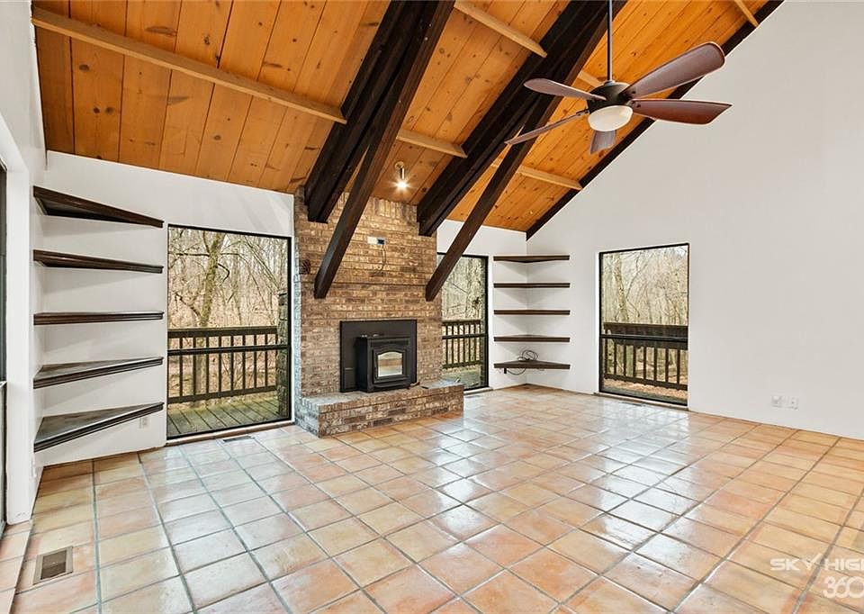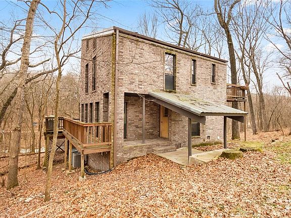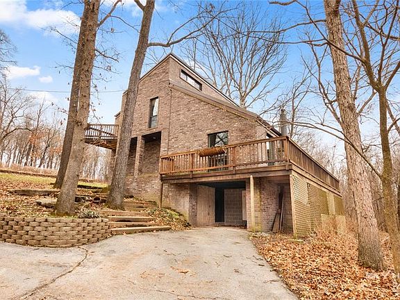 This welcoming contemporary cottage, sitting on 3.28 acres, is nestled back in the trees and overlooks a beautiful wet weather creek. You will love the views from the living room with it's vaulted ceiling, exposed wood beams, and large picture widows. Features: All brick exterior, metal roof, gutters, custom stained glass front door, terracotta tile floors, pellet stove for cold winter nights, huge wrap around deck that is perfect for entertaining, large 3 car detached garage, large garden area, and even has it's own chicken coop! About a 30 minute drive to Walmart Home Office and only 5 minutes to downtown Decatur. If you are looking to get off the off the beaten path a bit and want some room to spread out, this is a must see!
