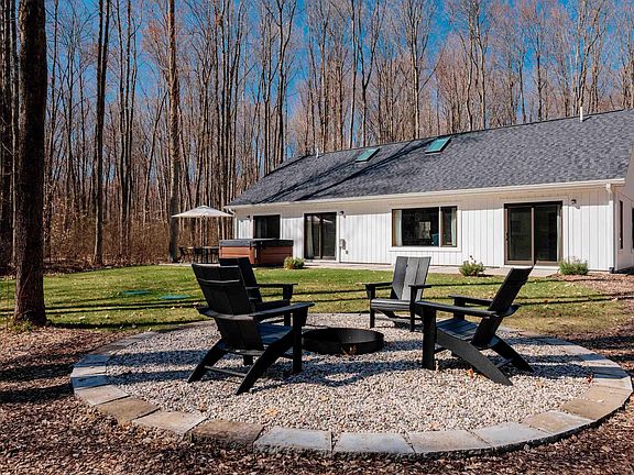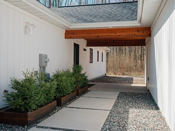 Impeccably built custom home, completed in 2022, ideally situated in a private, peaceful setting halfway between the charming villages of Lake Ann & Interlochen. Option to purchase fully furnished for move-in ready enjoyment or use as turn key rental. Radiant in-floor heat provides an extra level of comfort & energy efficiency. Surrounded by mature trees & thoughtful landscaping, this turnkey home offers a rare combination of quality, comfort, & style. Inside, you’ll find 1,512 sqft of well-designed living space, where every detail has been meticulously crafted. Both spacious bedrooms are en suite & feature Pella sliding glass doors that open to the serene backyard, offering seamless indoor-outdoor living. The heart of the home is a stunning kitchen with custom frameless European-style cabinetry (dark brown Eucalyptus Egger veneer with finished undersides & maple interiors, solid maple dovetailed drawers, heavy-duty Blum drawer slides & soft-close hinges) accented with modern Danish pulls. Spacious quartz countertops & high-end stainless steel appliances - including a Bosch 800 series gas range, ultra-quiet Bosch dishwasher & French Door LG refrigerator - complete the chef’s kitchen. Step outside & enjoy a beautifully designed outdoor oasis. The concrete patio spans the entire length of the home, perfect for entertaining or quiet relaxation. A stone fire pit & mature trees frame the backyard, which comes alive with color in the fall. The entryway, with its patinated steel planter boxes & stone-lined paths, sets a welcoming tone the moment you arrive. Enjoy dining & grocery options in both Lake Ann & Interlochen. Just over 1 mile from Lake Dubonnet State Forest & all its outdoor recreation opportunities (hiking, mountain biking, fishing, paddleboarding, boating). Golf, snowshoeing & cross-country skiing only 5 minutes away. Close to award-winning golf at Arcadia Bluffs & skiing at Crystal Mountain.
